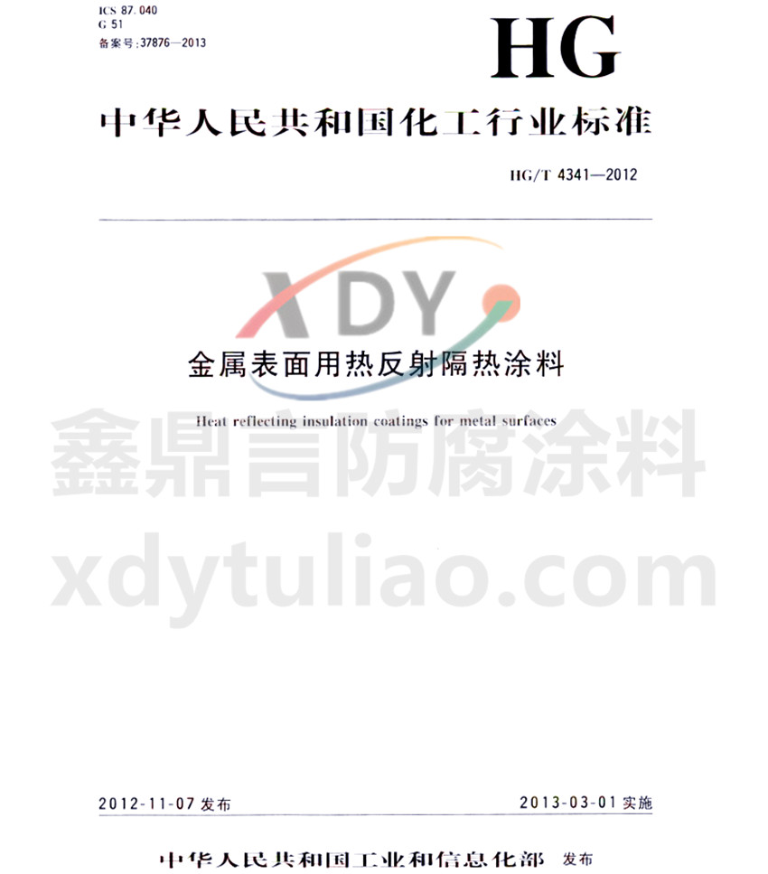 HG/T 4341-2012金屬表面用熱反射隔熱涂料標準 ICS 87.040 G51 備案號:37876-2013 HG 中華人民共和國化工行業(yè)標準 HG/T4341-2012 金屬表面用熱反射隔熱涂料heat reflection coatings for metal surfaces 2012-11-07發(fā)布 2013-03-01實施 中華人民共和國工業(yè)和信息化部發(fā)布 本標準規(guī)定了金屬表面用