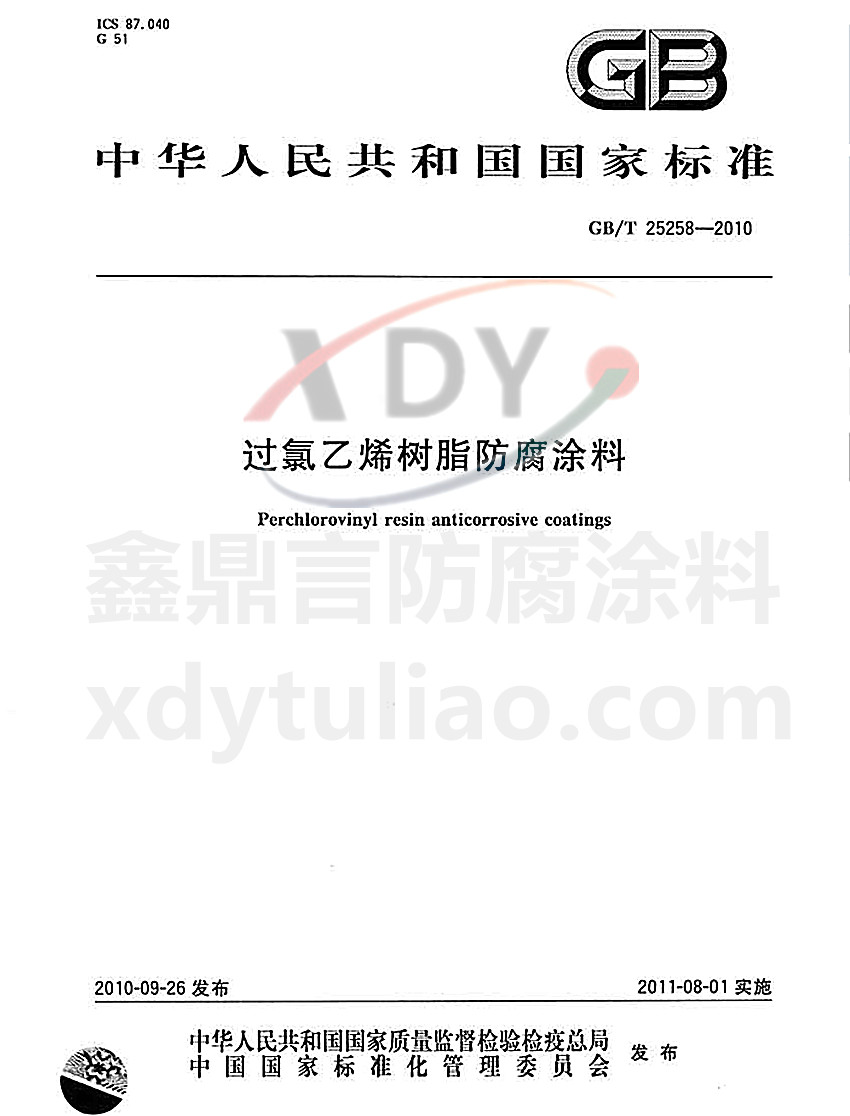 過氯乙烯樹脂防腐涂料國家標準GB/T 25258-2010