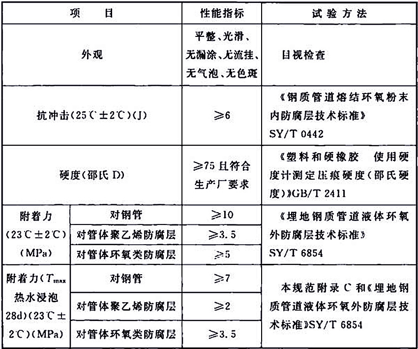 4.3 補口防腐層質量檢驗應包括外觀、厚度、硬度、漏點和附著力,并應符合下列規定: